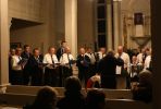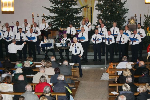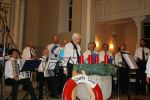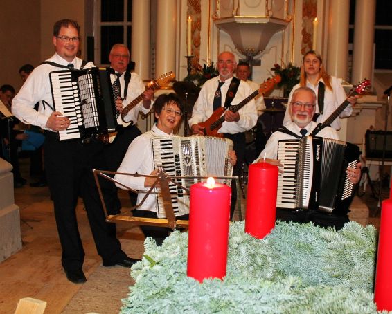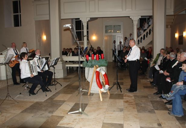 Heinz Neumeister re.: Gerhard Wilhelm trägt Weihnachtsgeschichten vor ganz re.: Pastor Weber und die Band |